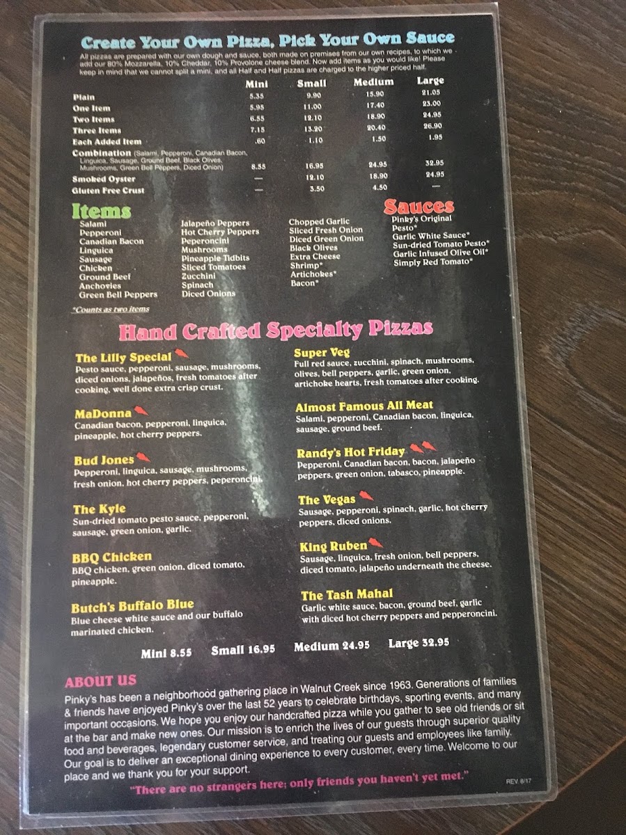 Spicy. Pepperoni, linguica, sausage, mushrooms, fresh onion, hot cherry peppers, pepperoncini.